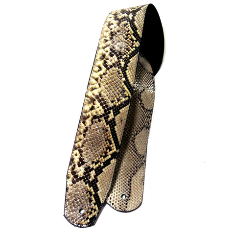 A great price for Python skin layered over a supple piece of leather and backed with high quality Suede! The result is a thick and supple, gorgeous guitar strap. We have never seen a Python strap that even compares to ours! We only sell Python guitar straps on our site once a year. We create our Randy Rhoads Python guitar straps and save all the large, beautiful leftovers to create these for the Holiday Season. We are putting together a nice little stack of Python straps, and will be posting them over the next week. If you have a certain width in mind, give us a shout and we'll let you know what's coming up!