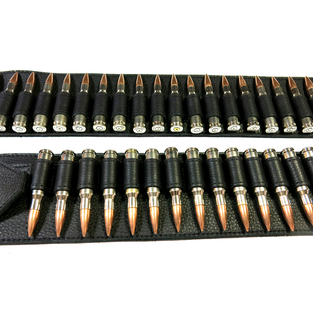 This Werewolf Slayer Bandolier Guitar Strap is created just like our regular Bandolier guitar strap, but with Nickel Silver .308 Winchester bullets. The bullet casings are empty, so there are no issues with shipping!